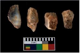 | Description / विवरण | There are n 4 of utilized worked cores. They show multidirectional irregular scar pattern. Two are tapering at one end. |