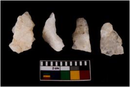 | Description / विवरण | There are n 4 flake cores. All of them are fully fluted flake cores without any trace of crested ridge flakes. Some are tapering at one end and some have sharp edges. |