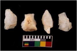| Description / विवरण | There are n 4 flake cores. All of them are fully fluted flake cores without any trace of crested ridge flakes. Some have flat base. Some have sharp edges and some have blunted edges. |
