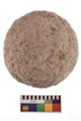 | Description / विवरण | Specimen of rough round hammer stone with vesicles throughout. |