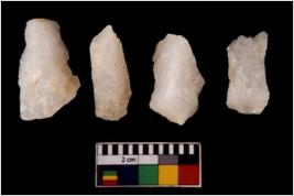 | Description / विवरण | There are n 4 flake cores. All of them are fully fluted flake cores without any trace of crested ridge flakes. Some are tapering at one end and some have sharp edges. |
