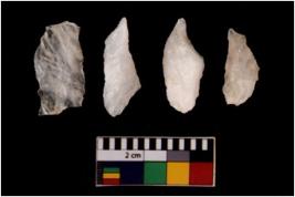 | Description / विवरण | There are n 4 flake cores. All of them are fully fluted flake cores without any trace of crested ridge flakes. Some are tapering at one end and some have sharp edges. |