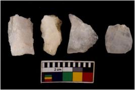 | Description / विवरण | There are n 4 flake cores. All of them are fully fluted flake cores without any trace of crested ridge flakes. Some are tapering at one end and some have sharp edges. |