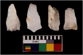 | Description / विवरण | There are n 4 flake cores. All of them are fully fluted flake cores without any trace of crested ridge flakes. Some are tapering at one end and some have sharp edges. |