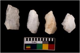 | Description / विवरण | There are n 4 flake cores. All of them are fully fluted flake cores without any trace of crested ridge flakes. Some are tapering at one end and some have sharp edges. |