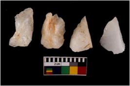 | Description / विवरण | There are n 4 flake cores. All of them are fully fluted flake cores without any trace of crested ridge flakes. Some are tapering at one end and some have sharp edges. |