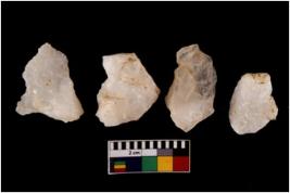 | Description / विवरण | There are n 4 flake cores. All of them are fully fluted flake cores without any trace of crested ridge flakes. Some have flat base. Some have sharp edges and some have blunted edges. |