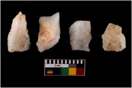 | Description / विवरण | There are n 4 flake cores. All of them are fully fluted flake cores without any trace of crested ridge flakes. Some have flat base. Some have sharp edges and some have blunted edges. |