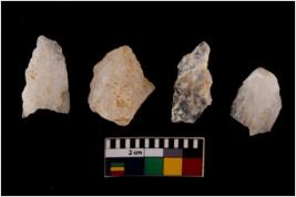 | Description / विवरण | There are n 4 flake cores. All of them are fully fluted flake cores without any trace of crested ridge flakes. Few are tapering at one end and some have sharp edges. |