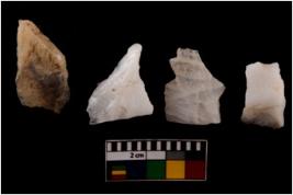 | Description / विवरण | There are n 4 flake cores. All of them are fully fluted flake cores without any trace of crested ridge flakes. Some have flat base. Some have blunted edges and few of them have sharp edges. |