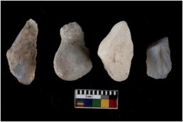| Description / विवरण | There are n 4 flakes tool; there are flakes tool with prominent flaking marks. It made up of a large flakes with sides trimmed. |