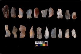 | Description / विवरण | Flake - There are n 20 flakes tool; there are multidirectional irregular scar pattern on them; made of short flakes and all four have tapering edges. |