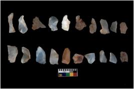 | Description / विवरण | Flake - There are n 20 flakes tool; there are multidirectional irregular scar pattern on them; made of short flakes and all twenty have tapering edges. |