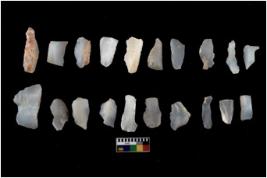 | Description / विवरण | Flake - There are n 20 flakes tool; there are multidirectional irregular scar pattern on them; made of short flakes and all twenty have tapering edges. |