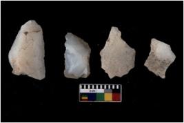 | Description / विवरण | There are n 4 flakes tool; there are flakes tool with prominent flaking marks. It made up of a large flakes with sides trimmed. |