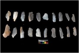 | Description / विवरण | Flake - There are n 20 flakes tool; there are multidirectional irregular scar pattern on them; made of short flakes and all twenty have tapering edges. |