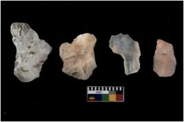 | Description / विवरण | There are n 4 flakes tool; there are flakes tool with prominent flaking marks. It made up of a large flakes with sides trimmed. |