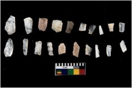 | Description / विवरण | There are n 20 flakes tool; there are multidirectional irregular scar pattern on them, made of short flakes and few have tapering edges. |