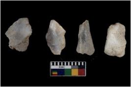 | Description / विवरण | There are n 4 flakes tool; there are flakes tool with prominent flaking marks. It made up of a large flakes with sides trimmed. |