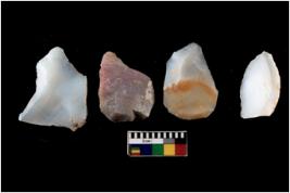 | Description / विवरण | There are n 4 flakes tool; there are large flakes with sides trimmed, Marks of secondary flaking are present on the both the faces.The dorsal is relatively flat. |