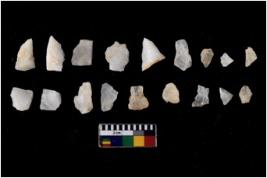 | Description / विवरण | There are n 18 Flake tool; There are multidirectional irregular scar pattern on them. few have blunt edges, Some of them are tapering at one end. |
