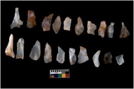 | Description / विवरण | Flake - There are n 20 flakes tool; there are multidirectional irregular scar pattern on them; made of short flakes and all twenty have tapering edges. |