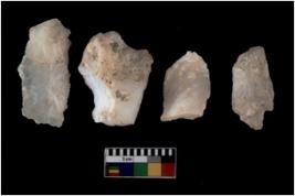 | Description / विवरण | There are n 4 flakes tool; there are large flakes with sides trimmed, Marks of secondary flaking are present on the both the faces. One is pointed functional top. |