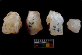 | Description / विवरण | There are n-4 of utilized cores. There are multidirectional irregular dominant scar pattern on both dorsal and ventral face of the cores. Some of them bulge of percussion and some are flat flake cores. |