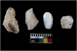 | Description / विवरण | There are n 4 flakes tool; there are large flakes with sides trimmed, Marks of secondary flaking are present on the both the faces. |