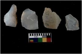 | Description / विवरण | There are n 4 flakes tool; there are flakes with sides trimmed, Marks of secondary flaking are present on the both the faces. |