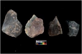 | Description / विवरण | There are n 4 flakes tool; there are large flakes with sides trimmed, Marks of secondary flaking are present on the both the faces.The dorsal is relatively flat. |