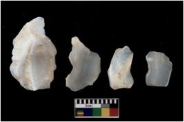| Description / विवरण | There are n 4 flakes tool; there are multidirectional irregular scar pattern on them; made of short flakes and all four have tapering edges. |
