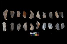 | Description / विवरण | Flake - There are n 20 flakes tool; there are multidirectional irregular scar pattern on them; made of short flakes and all twenty have tapering edges. |