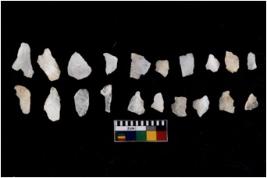 | Description / विवरण | There are n 20 flakes tool; there are multidirectional irregular scar pattern on them; made of short flakes and few have tapering edges. |