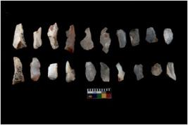 | Description / विवरण | Flake - There are n 20 flakes tool; there are multidirectional irregular scar pattern on them; made of short flakes and all twenty have tapering edges. |