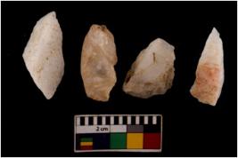 | Description / विवरण | There are n 4 flake cores. All of them are fully fluted flake cores without any trace of crested ridge flakes. Few are tapering at one end and some have sharp edges. |