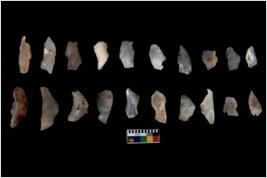 | Description / विवरण | Flake - There are n 20 flakes tool; there are multidirectional irregular scar pattern on them; made of short flakes and all twenty have tapering edges. |