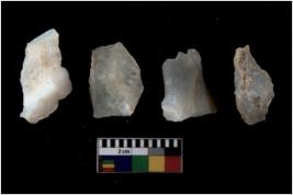 | Description / विवरण | There are n 4 flakes tool; there are large flakes with sides trimmed, Marks of secondary flaking are present on the both the faces. One is pointed functional top. |