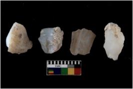 | Description / विवरण | There are n 4 flakes tool; there are multidirectional irregular scar pattern on them; made of short flakes and all four have tapering edges. |