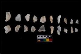 | Description / विवरण | There are n 20 flakes tool; there are multidirectional irregular scar pattern on them; made of short flakes and few have tapering edges. |