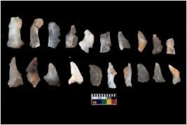| Description / विवरण | Flake - There are n 20 flakes tool; there are multidirectional irregular scar pattern on them; made of short flakes and all twenty have tapering edges. |