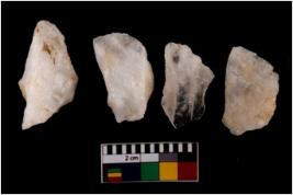 | Description / विवरण | There are n 4 flake cores. All of them are fully fluted flake cores without any trace of crested ridge flakes. Some have flat base. Some have blunted edges and few of them have sharp edges. |