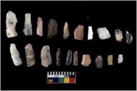 | Description / विवरण | There are n 20 flakes tool; there are multidirectional irregular scar pattern on them; made of short flakes and few have tapering edges. |