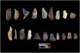 | Description / विवरण | There are n 20 Flake tool; There are multidirectional irregular scar pattern on them. few have blunt edges, Some of them are tapering at one end. |