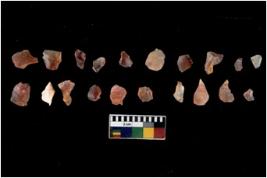 | Description / विवरण | Specimen of flakes Chips with prominent flaking marks. It made up of a short flakes with sides trimmed. |