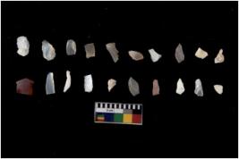 | Description / विवरण | There are n 20 Flake tool; There are multidirectional irregular scar pattern on them. few have blunt edges, Some of them are tapering at one end. |