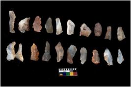 | Description / विवरण | Flake - There are n 20 flakes tool; there are multidirectional irregular scar pattern on them; made of short flakes and all four have tapering edges. |