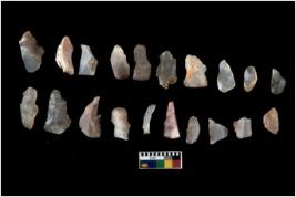 | Description / विवरण | Flake - There are n 20 flakes tool; there are multidirectional irregular scar pattern on them; made of short flakes and all twenty have tapering edges. |