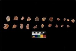 | Description / विवरण | Specimen of flakes Chips with prominent flaking marks. It made up of a short flakes with sides trimmed. |