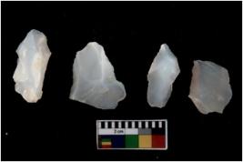 | Description / विवरण | There are n 4 flakes tool; there are multidirectional irregular scar pattern on them; made of short flakes and all four have tapering edges. |